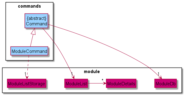 ModuleDetails instances and operating a repository of moduleDetails( ModuleDb) respectively. ModuleCommand